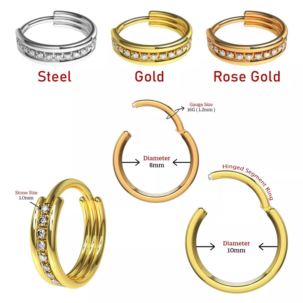 Dieser klassische Piercing-Ring eignet sich für die verschiedensten Piercingstellen – ob Ohr, Nase, Lippe etc. – und sieht immer sensationell gut aus. Der Clicker-Ring besitzt ein praktisches Scharnier und kann so ganz einfach & selbstständig in den Stichkanal eingesetzt und geschlossen werden. Er ist aus hochwertigem & besonders ebenem Material (Chirurgenstahl 316L) hergestellt. In den farbigen Ausführungen ist er mit einer kratzfesten PVD-Beschichtung überzogen.