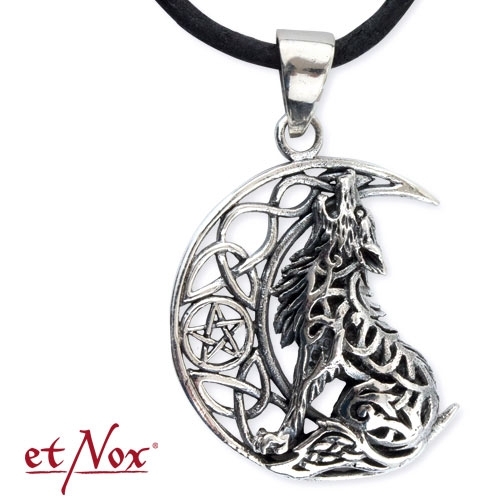 -Silberanhänger heulender Wolf im Mond mit keltischem Design
