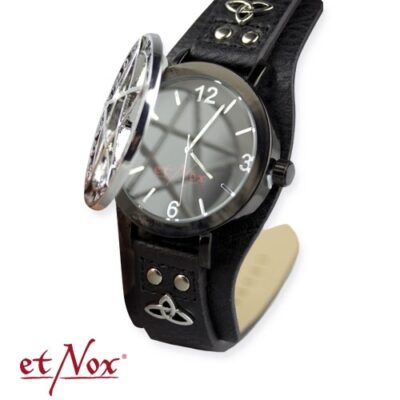 Diese Uhr ist ausgefallener Armschmuck & stilvoller Zeitmesser in einem. Klappe den Deckel mit dem Pentagramm auf und bewundere das Zifferblatt.