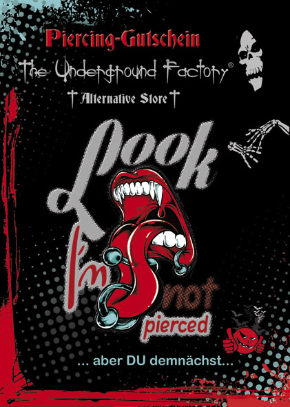 Mit diesem Gutschein könnt Ihr vor Ort in Bielefeld in der gesamten Underground Factory nach Herzenslust shoppen gehen oder Euch bei uns piercen lassen.