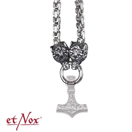 -Halskette mit Wolfsköpfen & Clipring