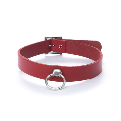 Leder-Halsband mit Ring, rot